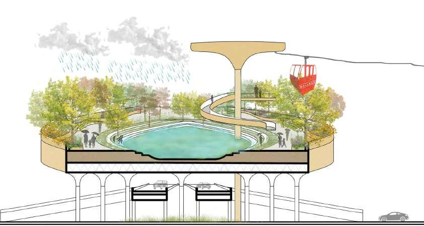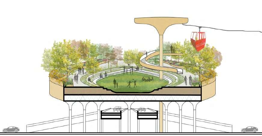 Hazel’s Garden honors Hazel Johnson, a pioneer in environmental justice. Located at 115th Street and Interstate 94, this floating garden and plaza provides a space for community gathering and recreation. It will also serve as the first stop for the new gondola transit service, acting as a gateway to the Calumet region while offering a serene environment for all.