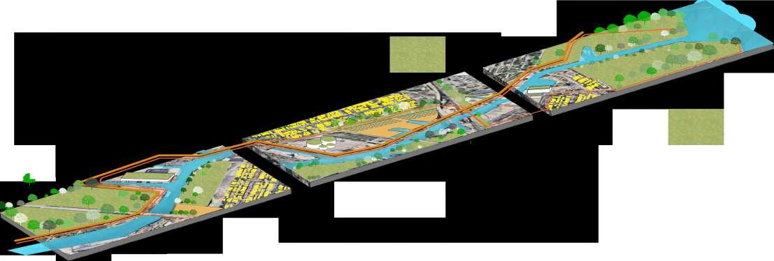 These areas have access to green spaces and rivers but it might be less frequent or more difficult to access. Green spaces could be smaller or less well-connected to the surrounding environment.