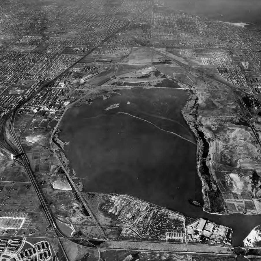 The following images show the transformation of the Calumet region’s landscape by railroads, channelized rivers, and extensive industrial landfilling using slag and sand. These changes expanded industrial land, erased lakes like Hyde and Berry, and, by the mid-20th century, highways further fragmented the natural wetlands and shoreline.
