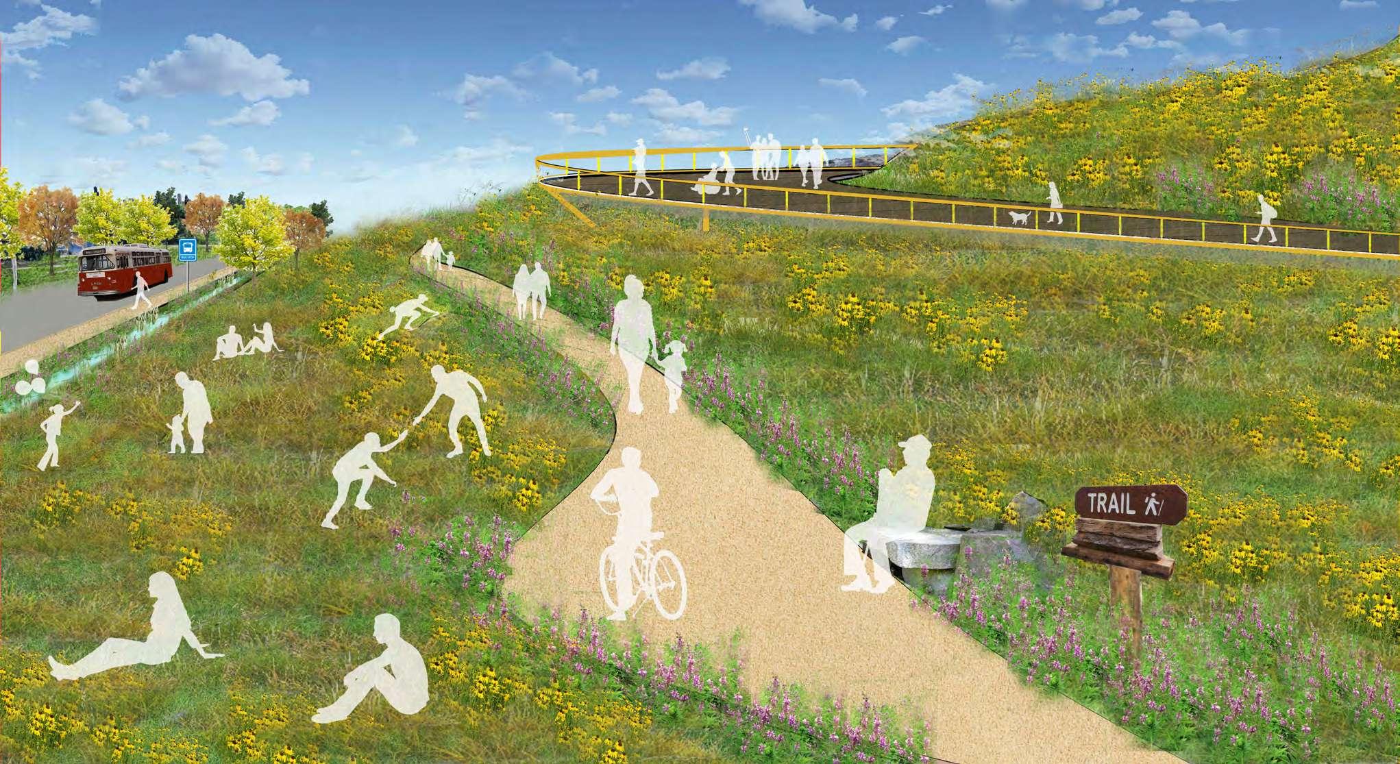Engineered caps on the leachate and methane through integrated treatment systems, while the reshaped mounds serve as topographic features within the broader park landscape.