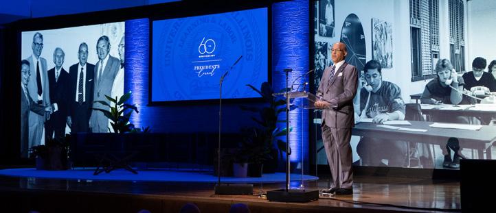 Since its founding in 1964, the President’s Council has been the premier University of Illinois donor recognition program. Originally chartered as the Presidents Club, the group was established to recognize alumni and friends who were financially committed to maintaining the university’s commitment to quality in higher education. It was named to honor the chief executives who guided the university. The UIF Board of Directors changed the group’s name to the President’s Council in 1977.