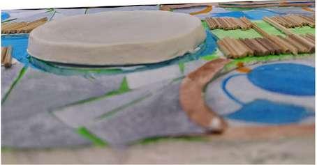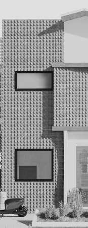 Modul dibuat dari campuran material resin dan limbah plastik yang melalui proses fabrikasi sampai menjadi bata plastik berbentuk geometri segitiga Sistem penyusunan interlocking horizontal maupun vertikal yang dapat disusun dengan beberapa variasi motif Eksplorasi bentuk didapatkan berdasarkan karakter material dan kemampuan material dalam mencapai bentuk