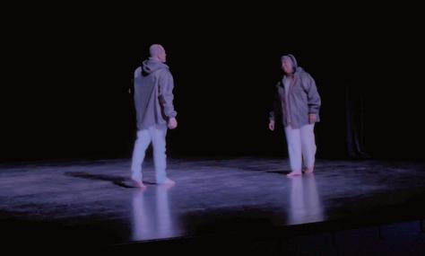 Due uomini, diretti verso un’isola «dove non cresce nulla, dove non c’è nulla se non rocce grigie, nude, pesanti... pesanti... pesanti...». Un testo minimalista e suggestivo che esplora l’esistenza umana attraverso un dialogo sospeso, pieno di silenzi, di monosillabi e ripetizioni, un incontro onirico che mette in discussione identità, vita, morte, memoria e libertà.