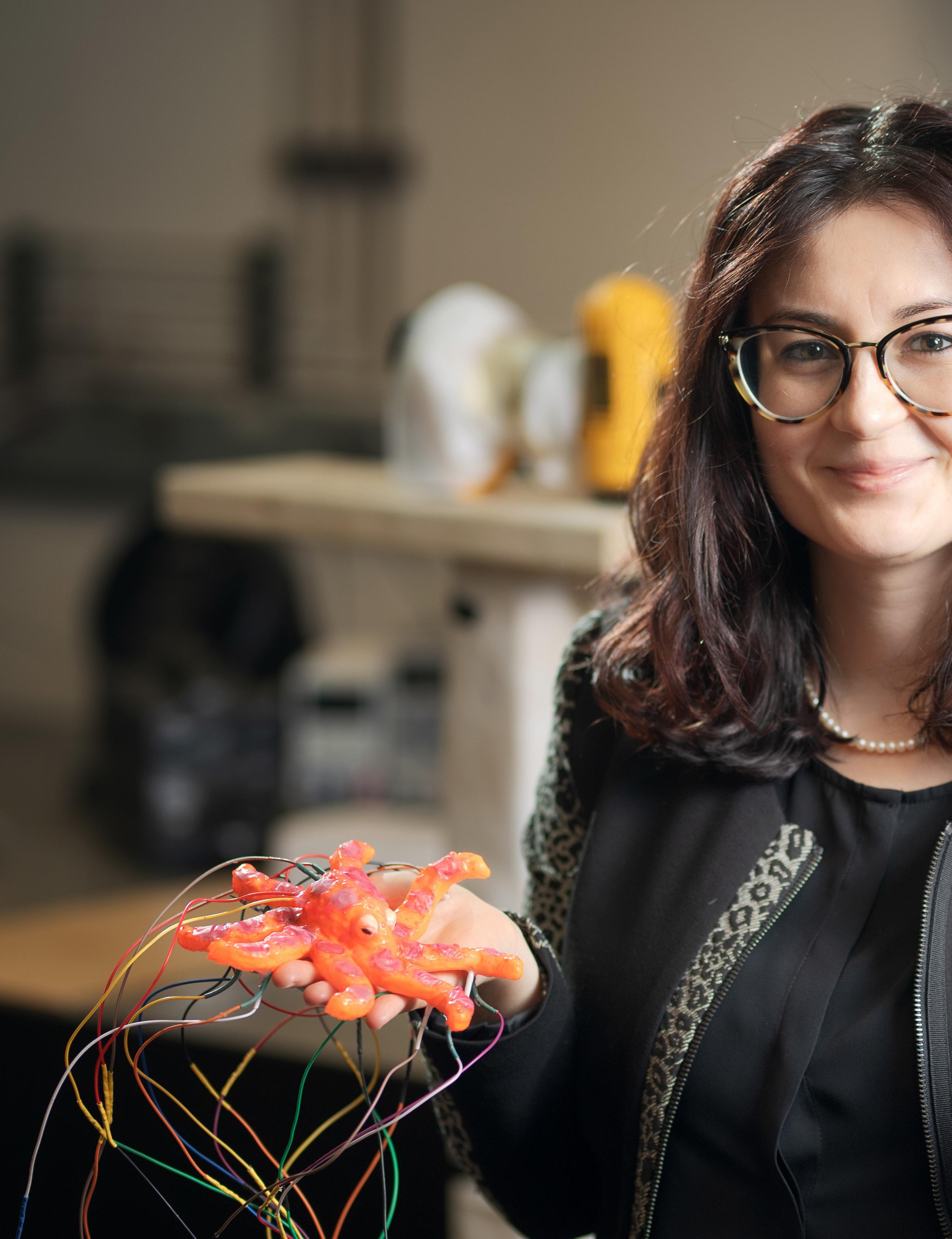 Caterina Lamuta, a University of Iowa assistant professor of mechanical engineering, has received the selective Director’s Fellowship from Defense Advanced Research Projects Agency (DARPA) to continue development of an underwater robot that mimics the movement of an octopus or squid. The prestigious award provides an optional third year of funding for Young Faculty Award (YFA) winners who demonstrated success during the first two years of the program.