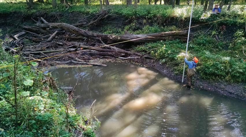 FIGURE 1 (TOP). Iowa State student, Billy Beck, collecting data in the channel of Walnut Creek, as part of the Walnut Creek project.