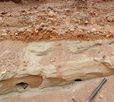 FIGURE 3. Thick packages of coarse sand and gravel, called outwash, are found in drainages that carried glacial meltwater. The orange pen shown is 5 inches in length.