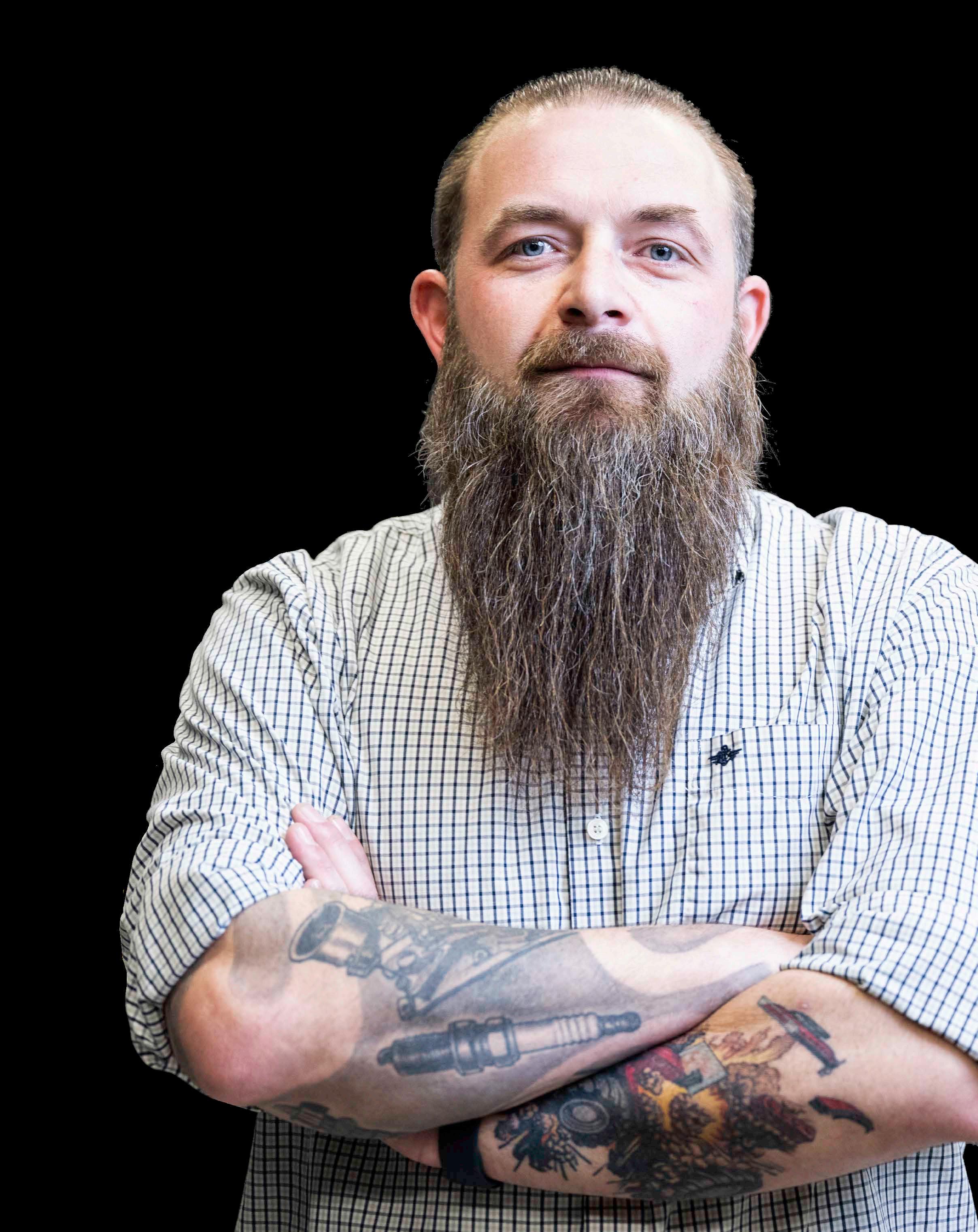 Ryan Clark poses at the Iowa Geological Survey office in Trowbridge Hall on the University of Iowa campus.