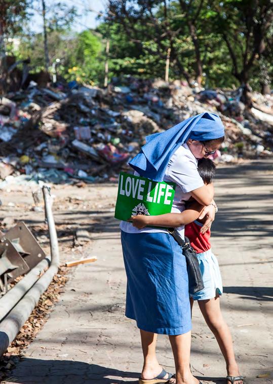“Llevo más de 30 años documentando este fenómeno en más de 150 países y empecé a plasmarlo en imágenes hace unos diez años, cuando me di cuenta de la gravedad del problema. [...] He estado en varios países en los que han trabajado las hermanas y [...] me he sentido pequeña ante su humildad y su incansable dedicación para levantarse cada día con muy pocos recursos y trabajar por el bien de la humanidad, poniéndose verdaderamente en peligro y ayudando a personas que son víctimas de la esclavitud o que podrían caer en las mallas de algún astuto traficante para convertirse en esclavos”