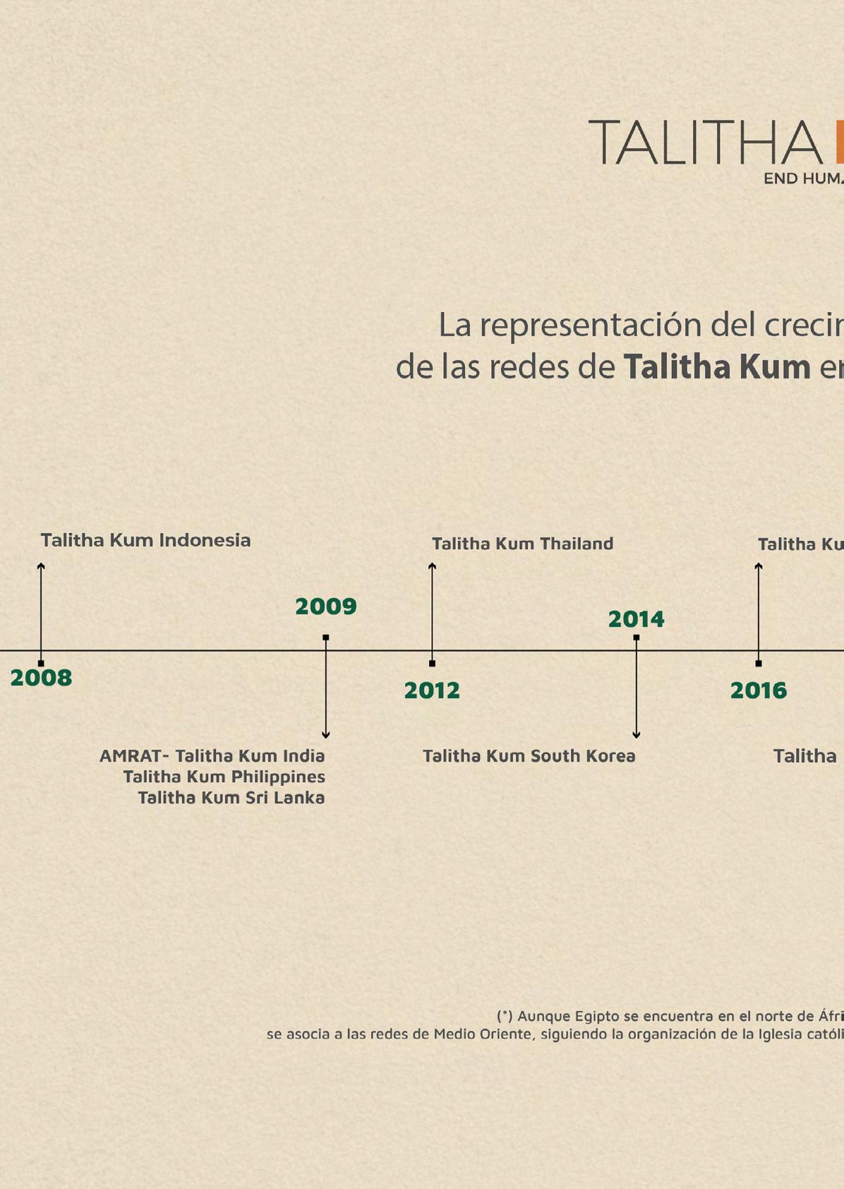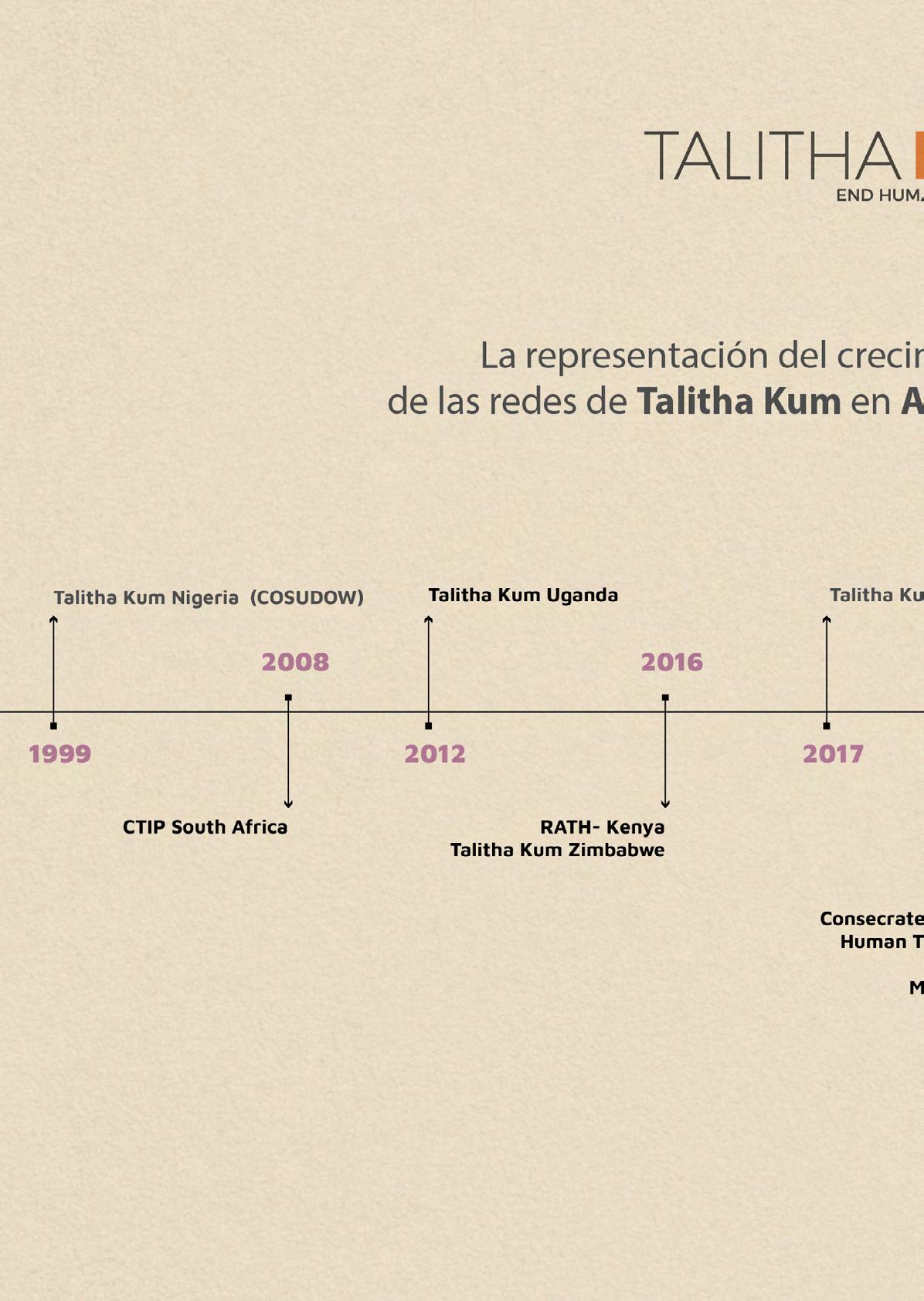 Talitha Kum, una red internacional de hermanas que trabajan contra la trata de personas, ha crecido significativamente y sigue esforzándose por lograr cambios que hagan de nuestro mundo un lugar mejor. Con sincera gratitud, también hago extensivo mi agradecimiento a las redes Talitha Kum de todo el mundo, que trabajan para lograr estos cambios y promover un mundo justo en el que cada ser humano pueda vivir con dignidad y plenitud.