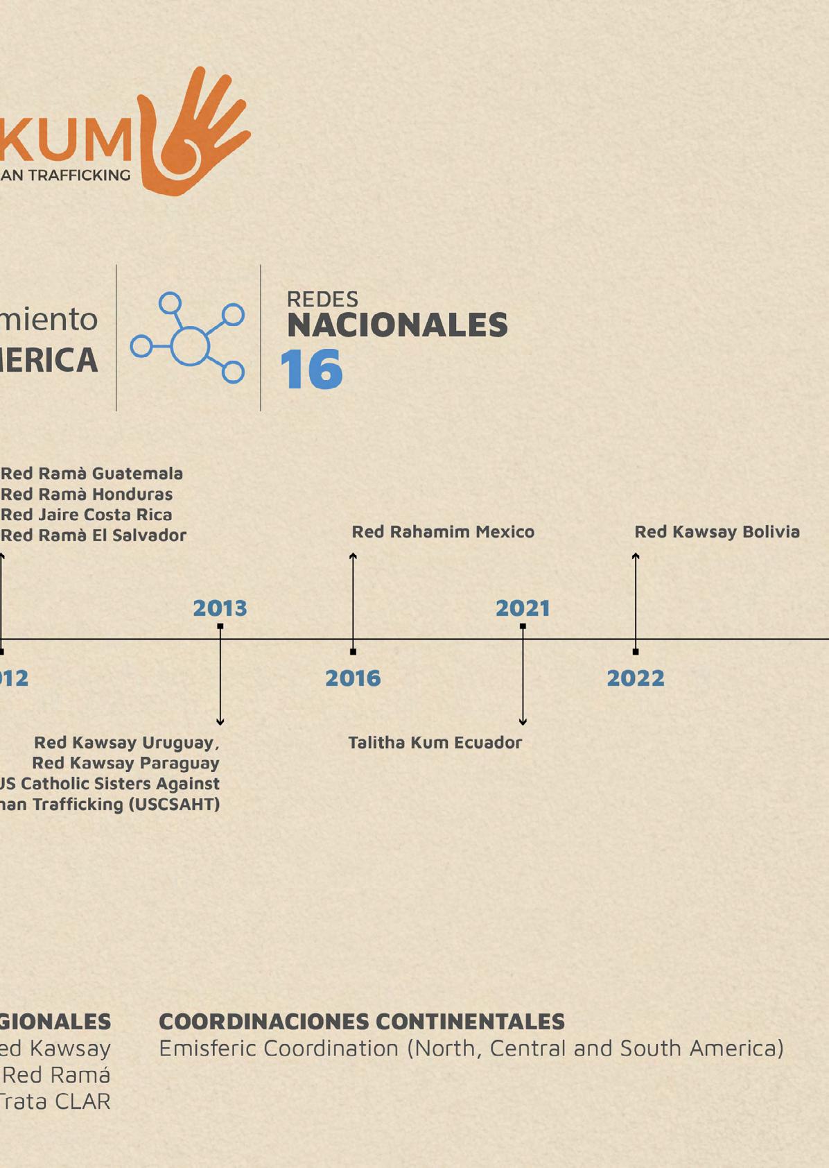 Desde el principio de nuestro trabajo, el fortalecimiento de la red, creada con la participación de diferentes organizaciones asociadas y confesiones religiosas dentro de las redes de Talitha Kum, ha sido crucial. Ser una Red de redes nos hace más fuertes. Caminar y trabajar juntos, así como la coordinación y cooperación, son herramientas esenciales para luchar contra la trata.