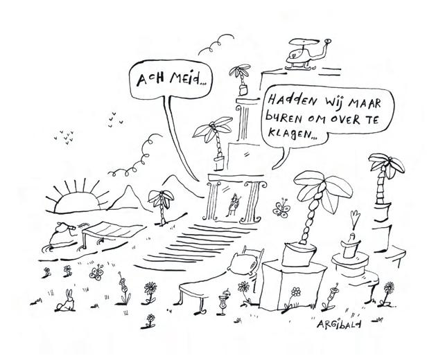 Voor het nieuwe seizoen van onze FOMO Show testen we de gastvrijheid in de provincie. We bellen random bij mensen aan en vragen om een slaapplek. Dat is vreselijk ongemakkelijk, want het is nogal een verzoek. Daar staan we dan: drie mannen van halverwege de dertig, met terugtrekkende haargrenzen, bedelend om een logeerbed. ‘Er zijn genoeg hotels in de buurt,’ zeggen de meeste mensen. Als wij dan uitleggen dat het weinige geld van de NPO wordt opgeslokt door Yvon Jaspers, krijgen we een lach, maar veel meer ook niet. Van de mensen die opendoen weigert 90 procent. Dat zou ik zelf ook doen. Toch is het tot nu toe in elke provincie wel gelukt – meestal omdat we werden herkend. In Brabant waren het Kees en Marleen die zo lief waren drie vreemde gasten op te vangen. En ook bij hen begon weer die ongemakkelijke dans die nu eenmaal ontstaat als je onaangekondigd iemands huis binnenloopt – met draaiende camera’s nog wel. Terwijl Marleen riep: ‘Let niet op de troep! Kees, ruim jij de zolder even op?’, probeerden wij ons zo dankbaar en flexibel mogelijk op te stellen. Maar intussen scande ik stiekem de ruimte op huisdieren. Bij zo ongeveer elk dier met vier poten speelt mijn astma namelijk op. Tobias, met zijn sociale angststoornis, maakte ook een vrij stroeve indruk. Gelukkig is daar dan altijd nog Jeppe, die het talent heeft om gastvrijheid met beide handen aan te nemen. Zo zat hij de eerste keer dat hij bij mijn ouders kwam al na een kwartier onder een fleecedekentje op de bank, met een kom courgettesoep in zijn klauwen.