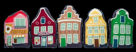 De schattige en kleurrijke huisjes van Christel Krukkert zet je graag in je vensterbank of op je schoorsteenmantel. Grachtenhuisjes met klok- en trapgeveltjes, een buurtwinkeltje of het café op de hoek. Van kleine bungalow tot imposant landhuis, Christel heeft voor iedereen een huis gehaakt.
