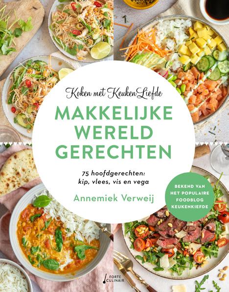 Koken met KeukenLiefde Makkelijke Wereldgerechten | 75 hoofdgerechten: kip, vlees, vis en vega | Annemiek Verweij paperback met flappen | 192 blz. | 18,5 x 24 cm | isbn 978 90 0039 461 6 | nur 440 Koken algemeen