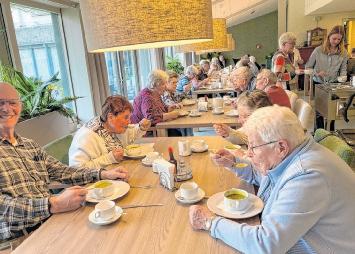 bekend te maken van ‘Eet met je hart’.” Vervolgens is het woord aan wethouder René Jansen. “Ik kom hier graag om even te kijken hoe jullie de middag doorbrengen. Het is supergezellig. Sommigen die hier zijn ken ik ook.” De gasten van de stamtafel reageren met allerlei opmerkingen op het praatje van de wethouder. Er wordt volop gelachen.