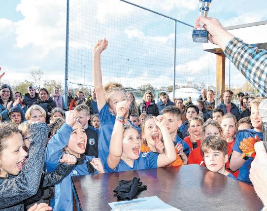 om de molen, veilig meedoen aan heerlijk Oud Hollandse spelen. Al is het spel met de elektrische spiraal wat minder oud natuurlijk! Ringen vangen, ballen gooien, stormbaan, grabbelton en schminken; een gratis spellenroute. Haal je kaart bij de ingang, ook voor een gratis glaasje ranja. De Goirlese Corry Schilder-van Gestel organiseert deze middag nu voor de 25e keer, daarvoor zal de oranjezon natuurlijk gaan schijnen. Ze zorgt ook dat ouders gezelligheid vinden, aan de statafels en op de oranje kleedjes. Koffie/ thee/chips/popcorn voor schappelijke prijzen. De Albert Heijn op het Koningsschild is haar sponsor hiervoor. Zonder het team van 20 vrijwilligers had Corry dit nooit gered. Leuk om te weten; bij de spelletjes helpt veel jeugd tussen 12 en 15 jaar. Misschien dat jouw puber dit eens wil meedoen? Bel Corry op 06-53765145. Zoals altijd komt onze burgervader, Mark van Stappershoef, samen met zijn Monique kijken hoe - rond de 250 – kinderen zich hier super vermaken.