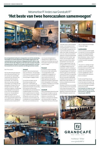 voor een groot deel gesloopt en volledig opnieuw opgebouwd. De insteek was om het beste van de twee horecazaken, Eetcafé FF en FF Anders, samen te voegen.” Personeel Jan Verhoeven prijst zich gelukkig met de inzet van zijn medewerkers. “In coronatijd hebben wij alle mogelijkheden aangegrepen om met al het personeelsleden een nieuwe zaak op te bouwen. Zij hebben gesloopt, beton gestort, staalconstructies gezet en getimmerd, kortom alles gedaan om dit resultaat te realiseren. Wij hebben de coronatijd maximaal benut om tot deze metamorfose te komen.” Grandcafé Met de aanduiding metamorfose slaat Jan Verhoeven de spijker op zijn kop. Grandcafé FF omvat een voorkamer, bierkamer en bovenkamer. Het interieur is ontworpen door Nathalie, zij is interieurarchitect en eigenaar Vliegend Hert-Ontwerp uit Rosmalen.