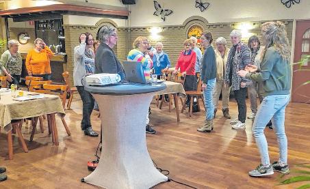 Op donderdag 7 maart beleefden de dames van het KVG Gilze een gezellige en leerzame avond onder leiding van oefentherapeute Karin Oomen. Zij gaf de oudere dames tips en tricks om vitaal te blijven in een veilige woonomgeving. De avond bestond niet alleen uit luisteren, want actief voegden de dames na elke uitleg de daad bij het woord.