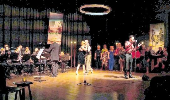 houden was er bijna voortdurend muziek te horen wat het voor de muzikanten een pittige voorstelling maakte. Het KlarinetNsemble werd ondersteund door de virtuoze klanken van violiste Annemieke Corstens. Zanger Huub werd waar nodig ondersteund door een speciaal koor onder leiding van Stephan van der Maas. Veel koorleden hebben ook meegedaan aan de eerdere grote producties en al die ervaring was duidelijk hoorbaar én te zien. Met hun continue
