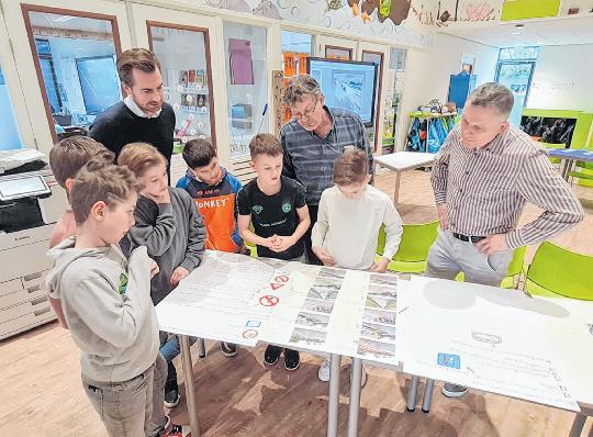 voorgestelde oplossing gemaakt. Fotocollages van onveilige situaties en presentaties werden gemaakt. Donderdag mochten ze dan eindelijk hun ideeën presenteren aan deze delegatie van de gemeente.