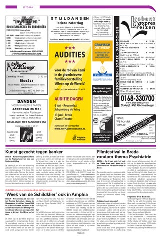 cliënt gestuurd informatiecentrum, dat zich richt op de geestelijke gezondheidszorg, verslavingszorg en maatschappelijke opvang. Vrijwilligers die zelf ervaring hebben als cliënt of naastbetrokkene vormen de basis van Stichting Info-Méér. Naast informatieverstrekking, lotgenotencontact en het bieden van een luisterend oor, worden verschillende activiteiten georganiseerd om stigma te doorbreken. Volg het nieuws rondom ‘Breda draait door’ op www.infomeer.nl. De opening van het festival wordt om 10.00 uur verricht door wethouder Bergkamp. Vanaf 11.00 uur kunt u dan genieten van de zeven films die vertoond worden, Programma ‘Breda draait door’ 10.00u Opening door wethouder Bergkamp 11.00u The boy with the incredible brain (Brain man) - documentaire; 11.55u Respiro – drama van Emanuele Crialese; 14.00u Toen was ik al beroemd – documentaire van Carin Goeijers; 14.55u What’s eating Gilbert Grape – drama van Lasse Hällström 17.00u Van Hitchcock tot David Lynch: film en het onderbewuste – documentaire; 18.35u Vast – drama van Rolf van Eijck; 19.25u Inleiding tot ‘Verloren Jaren’ door Bas Labruyère, de regisseur; 20.00u Verloren Jaren – drama van Bas Labruyère. Voorverkoop bij Stichting Info-Méér en VVV Breda.