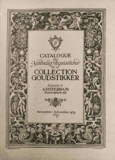 In 1915 begon Kunsthandel Goudstikker met de uitgave van gedrukte catalogi bij in eigen huis en elders gehouden tentoonstellingen van te koop aangeboden kunstwerken. Aanvankelijk waren de catalogi nog bescheiden van omvang en uitvoering. Onder invloed van Jacques Goudstikker, die in 1919 toetrad tot de firma en vanaf datzelfde jaar de voorwoorden van de catalogi ondertekende, werden ze steeds dikker en luxueuzer van uitvoering. De reeks van luxe-catalogi, die uiteindelijk zelfs werden uitgevoerd in oplagen van 1000 genummerde exemplaren, loopt door tot augustus 1929, toen het 39ste deel verscheen. Blijkbaar dwongen de verslechterde economische omstandigheden Jacques Goudstikker tot een versobering, want na 1929 verschenen alleen nog publicaties van een veel eenvoudiger uitvoering, voornamelijk ter begeleiding van thematische tentoonstellingen die de firma organiseerde. Catalogi die uitsluitend door de firma te koop aangeboden schilderijen omvatten, verschenen nog maar een enkele keer.