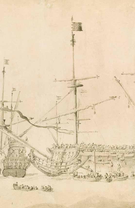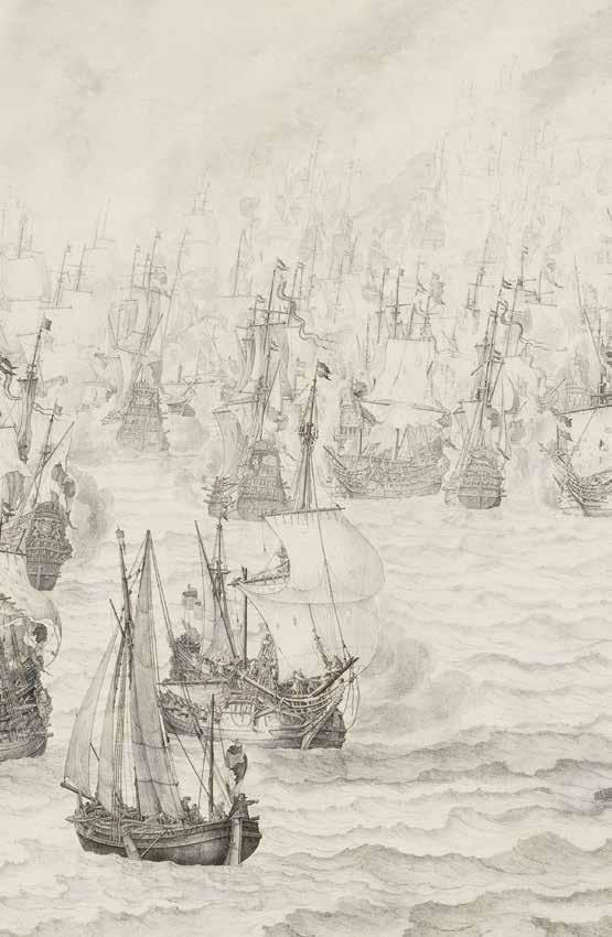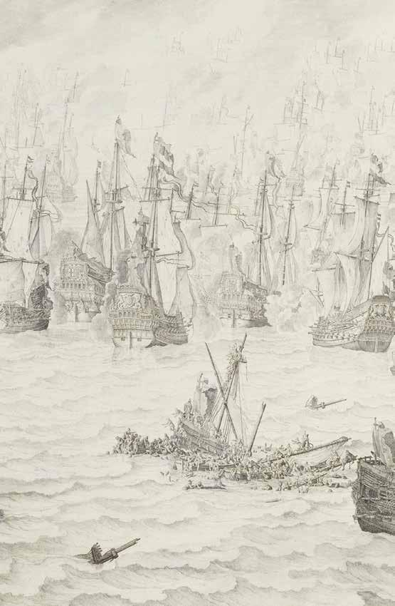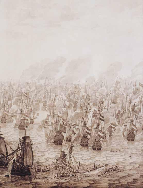 ‘Dat den hoochmoedt der vyanden daerdoor wat ingetoomt ende den jegenwoordigen bloedigen oorloch in een eerlycke ende verseeckerde vrede verandert moge werde’ De zeeslag bij Ter Heijde (detail). Zie pagina 20