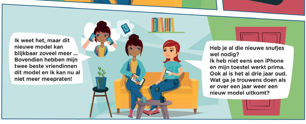 In je eigen woorden bewust Opzettelijk, je hebt erover nagedacht het budget De hoeveelheid geld die je aan iets kunt/wilt uitgeven op basis van je inkomsten en uitgaven de gecreëerde behoefte Je koopt iets omdat men je overtuigd heeft om dat te doen, niet omdat je het nodig hebt. het gezinsbudget Het totaal van alle inkomsten en uitgaven van een gezin lenen Geld lenen van iemand anders met de belofte om het later terug te betalen (soms met rente) de lening Geld dat een partij geeft aan een andere partij op voorwaarde dat het later terugbetaald wordt het milieu De grotere groep mensen met wie je samenleeft: je ouders, je familie, je vrienden, je kennissen de peergroup Een groep mensen uit de samenleving die een vergelijkbare leeftijd, status of belangstelling en gemeenschappelijke waarden en normen hebben