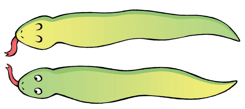 1a Teken streepjes op de slangen. Kijk goed naar de voorbeeldstrepen.