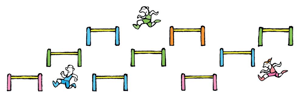 sprong door de haren.