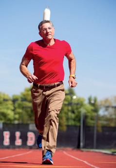 Hij liep de snelste halve marathon met een volle fles melk op zijn hoofd.
