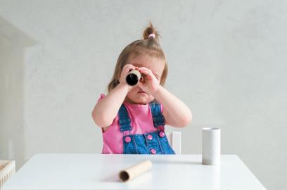 Aadje kijkt door zijn verrekijker. Hij ziet een stip. In de verte komt de boot van Sinterklaas aan. Je maakt nu zelf een verrekijker. Wat ontdek je als je erdoor kijkt?