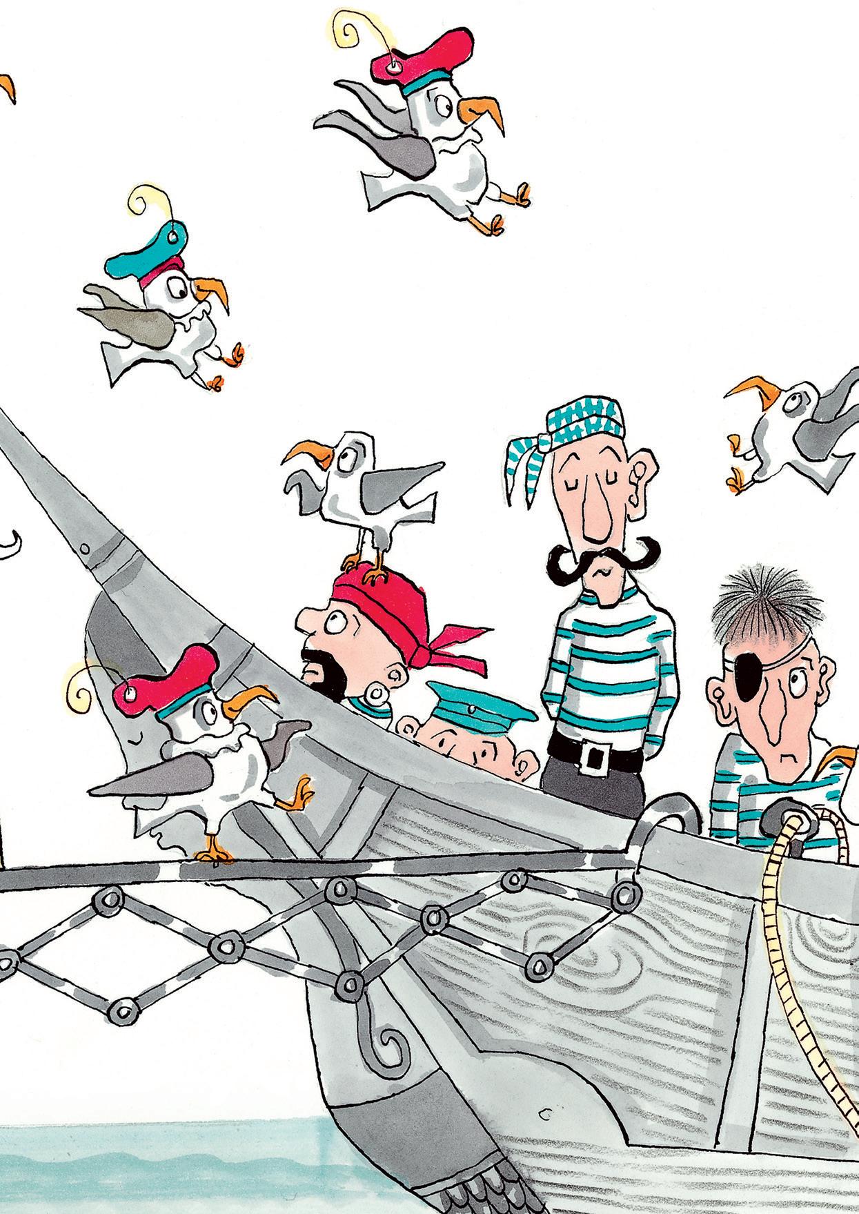 - Wat denk je dat de sinterklaas- en pietmeeuw aan de piraat vertellen?
