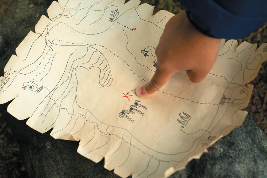 Je kunt eenvoudig zelf een schatkaart maken: verfrommel het papier, leg het in koffie, laat het drogen en verbrand tot slot de randen met vuur. De eerste drie stappen kunnen de kleuters zelf doen.