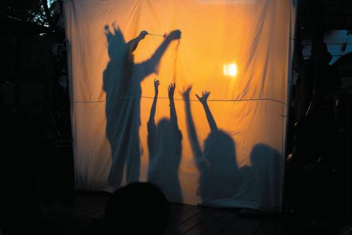 Olivier en oma gaan in de tuin met een zaklamp op zoek naar het brulmonster. Jij experimenteert met een groot doek, een lamp en je lichaam. Daarna maak je een schimmenspel met stokfiguren. Als de lamp brandt, zie je magische contouren, maar je weet niet meteen wat het is. Spannend en geheimzinnig, bijna net zo spannend als de brulgeluiden die Olivier in zijn bed kan horen.