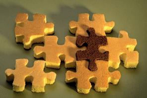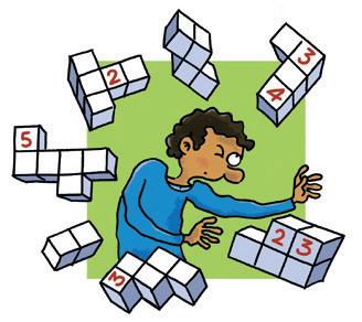 Welke twee delen vormen samen een kubus van 3 x 3 x 3 of van 2 x 2 x 2 blokken? Noteer de letters van de passende combinaties.