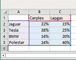 e Welke auto rijdt na 5 minuten het snelst?