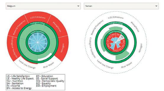 Figuur 5: Donutmodel voor België en Yemen [University of Leeds, 2022]