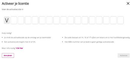 3 Er verschijnt een nieuw venster. Vul hier de activatiecode van je boek in. Je vindt de code op de eerste bladzijden van het boek.
