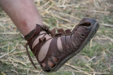 Hoe sneller de Romeinse legioenen zich kunnen verplaatsen, hoe beter. De aanwezigheid van het leger op het juiste moment en op de juiste plaats is dikwijls al genoeg om de heerschappij van Rome te verzekeren. Het is dus belangrijk dat de soldaten snel en lang kunnen stappen. De soldatenschoen, de caliga genaamd, is daarvoor speciaal ontworpen. De schoen wordt in één stuk gesneden uit leder van de beste kwaliteit. Op de harde, dikke zool worden 80 tot 90 nagels met ronde koppen geklopt. De ijzeren nagels geven de soldaten extra steun bij het stappen en voorkomen ook dat de dure schoenen snel verslijten. Een binnenzool beschermt de voet tegen de omgeklopte spijkers. De Romeinse legionairs marcheren op hun caligae over de heerbanen door het hele rijk. Alleen al het donderende geluid van de nagels op de stenen is angstaanjagend. De voeten blijven goed verlucht in de open schoenen en zijn dus beschermd tegen oververhitting op de kilometerslange marsen.