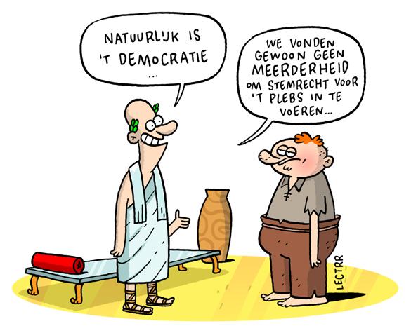 volkstribuun: een belangrijk Romeins ambt; de volkstribuun verdedigt de belangen van het volk en kan daartoe ieder besluit van de volksvergadering en senaat tegenhouden.