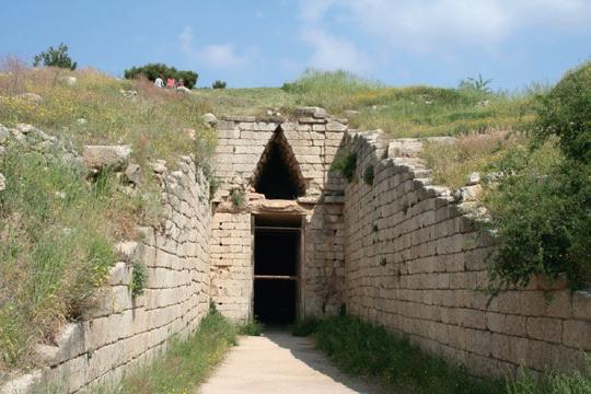 Peloponnesos: het grootste Griekse schiereiland, slechts over een dunne strook van 10 km met het Griekse vasteland verbonden; de Peloponnesos heeft de vorm van een uier.