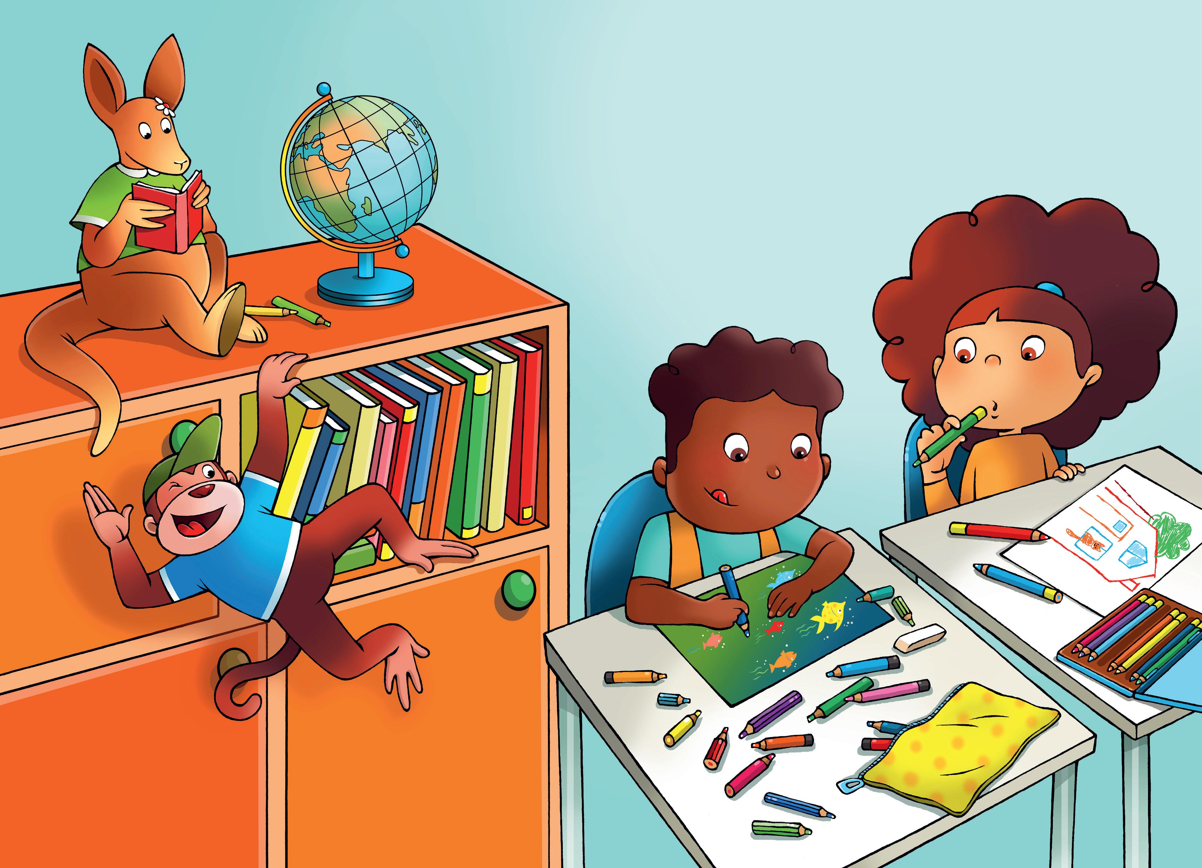 Nieuw in Taaltoer – ik lees met hup en aap is de versterking van de andere taaldomeinen via taalvaardigheidslessen en de thematische link met onze nieuwe methode Wereldwijzer voor de zaakvakken.