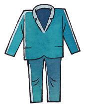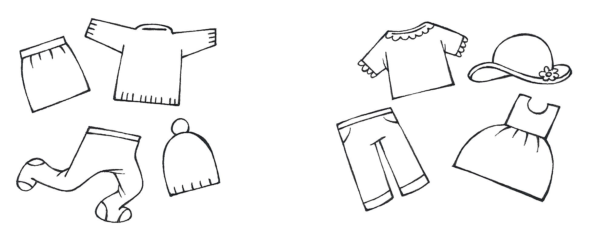 2 lees het woord in het eerste kledingstuk. zoek het in de andere kleren. kleur het.