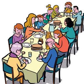 45a Mon grand-père Mo va avoir septante ans. Notre famille va au restaurant. Il y a six personnes à table. Le premier garçon apporte le menu. Ma grand-mère Daisy est à côté de Mo. Elle mange une pizza Vegetaria avec des légumes. Les deux enfants, Amadou et Laïs, ont un menu ‘bambino’. Ils mangent d’abord des spaghettis, puis une glace avec une sauce au chocolat. Amadou boit un coca et Laïs une limonade. Papa Faris prend une shakshuka, c’est un plat avec des légumes, des œufs et du pain. Maman Lina mange une pizza Quattro Formaggi avec quatre fromages. Ma grand-mère et papa boivent un verre de vin rouge. Le deuxième garçon apporte nos repas. Il dit ‘bon appétit’.