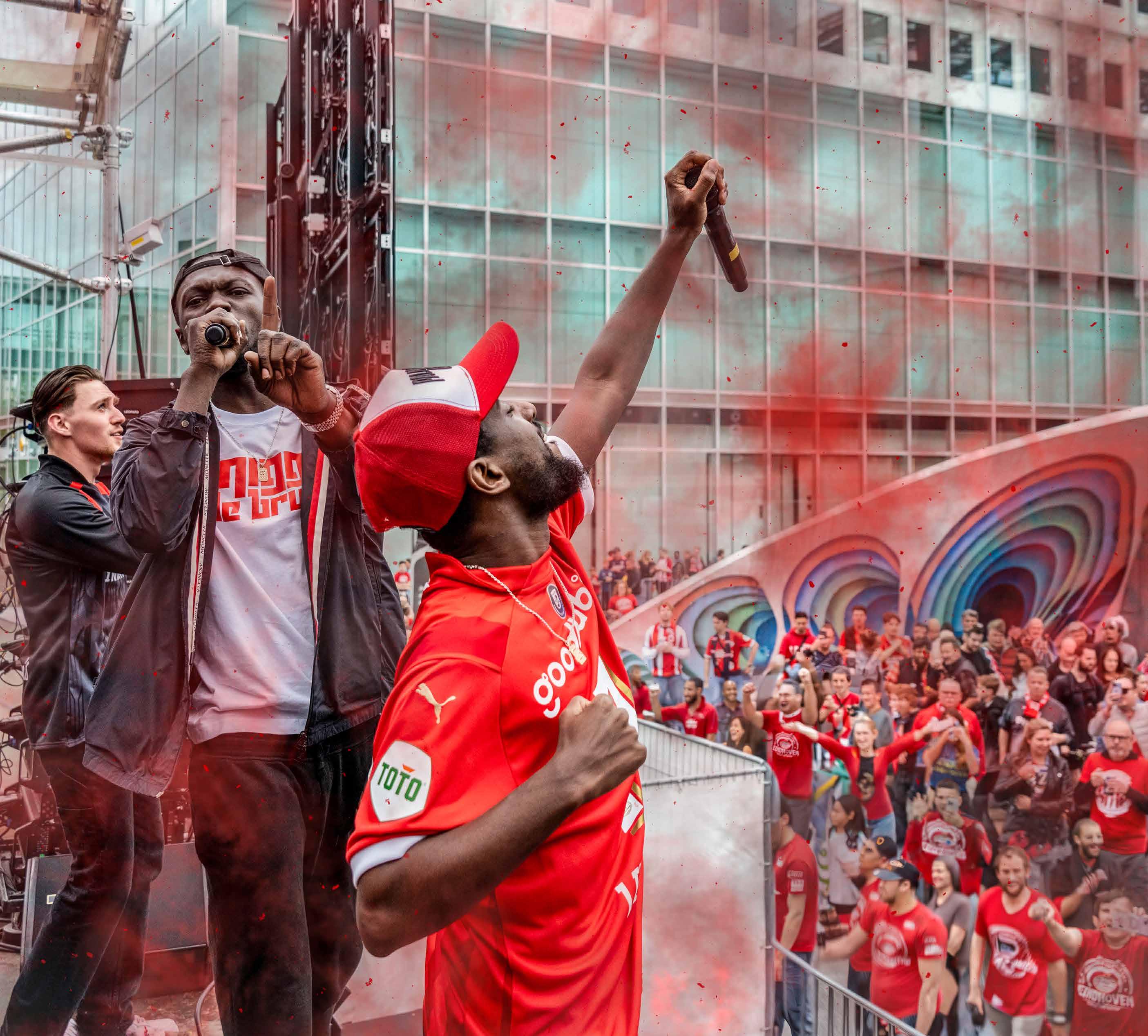 Waïl Ali, better known as Lirical, refers to the song ‘DNA,’ written and produced alongside Miggs de Bruijn and Sandersville under the banner of Eindhoven’s Finest: “‘DNA’ says it all; it shows our pride and highlights the unique bond between the club and its supporters. We don’t shout, but we wear our pride. Don’t mess with Eindhoven; we will always fight for our city. And if you want to join us, you’re more than welcome. That’s how easy-going it is. That is the core, that reserved core.”