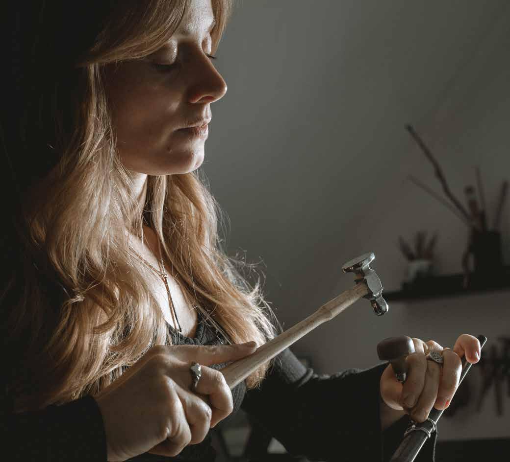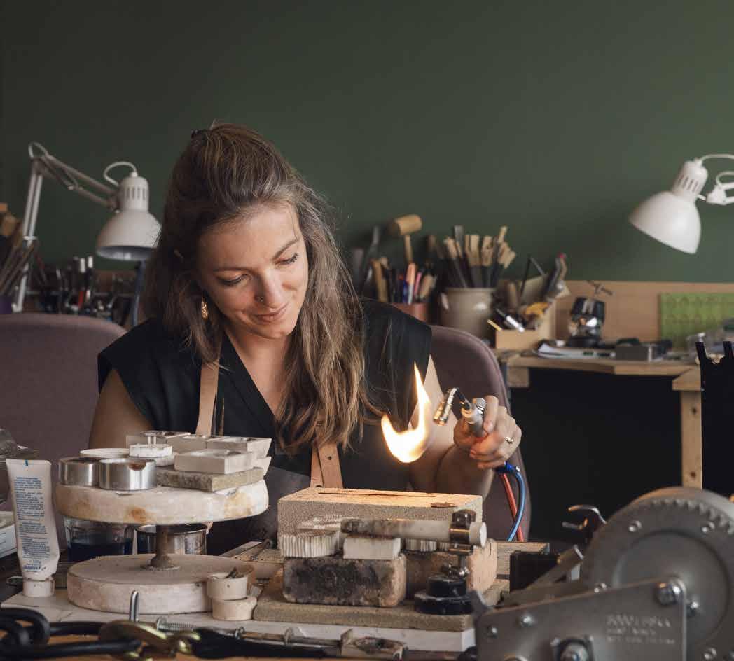 Gesmeed in Eindhoven. Steeds meer vrouwelijke goudsmeden werken achter de werkbank en combineren technische vaardigheid met artistieke gevoeligheid. Ze brengen een zorgzame, aandachtige én krachtige blik in het vak, nemen creatieve rollen op zich en tillen het ambacht naar een hoger niveau. Ook in Eindhoven gebeurt dit: de klandizie van onze vakmensen Maureen Centen en Leonie Kusters komt uit heel Nederland en België, en is op zoek naar hun onderscheidende, handgemaakte sieraden.