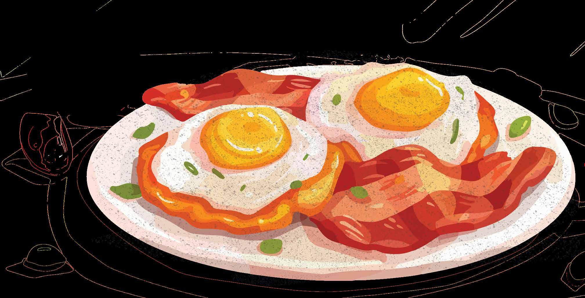Na het hossen en stappen bij iemand thuis uitsmijters bakken: dát is op de eieren gaan. Je hoeft niet meer te praten. Alleen eten. En langzaam weer landen. Bak 2 plakken spek of een handvol champignons in boter en daarna de 1, 2 of 3 eieren in dezelfde pan. Leg 2 sneden brood op je bord, blaadjes sla en plakjes tomaat erop, dan 2 plakken kaas, spek of de champignons en de eieren. Peper en zout erover. En sriracha of sambal als je weer wakker wilt worden. Klaar!