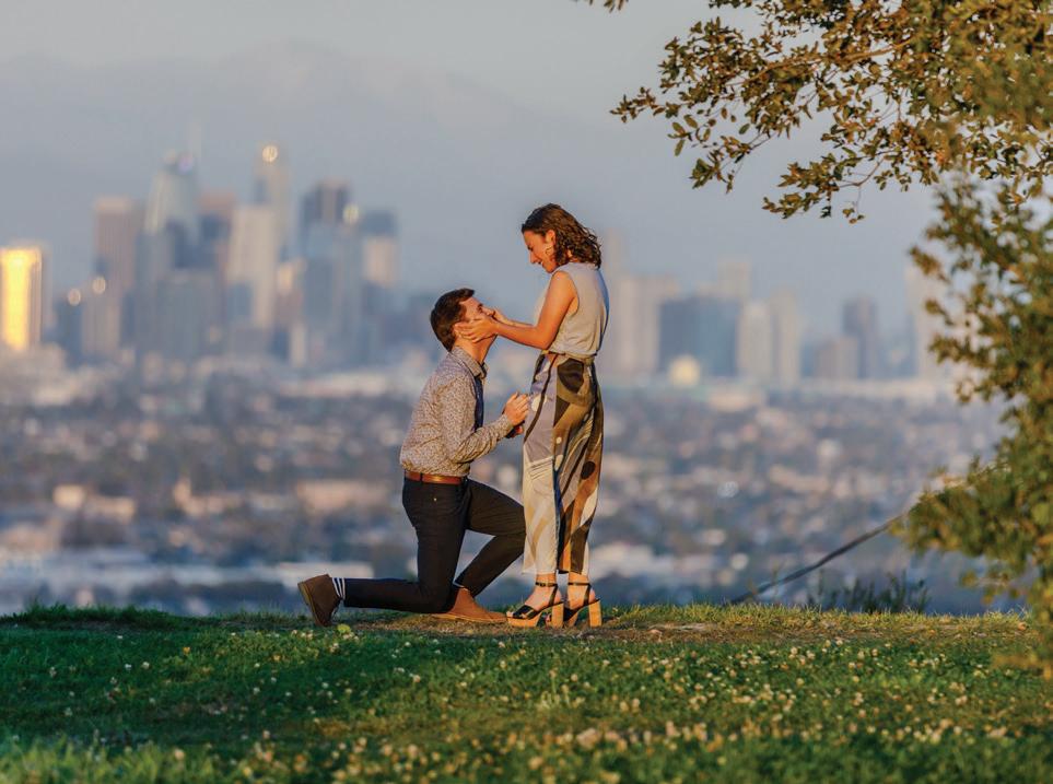 We changed for dinner and set out for the Kenneth Hahn Recreation Area, a sprawling park where I had scoped out a spot with a gorgeous view of the L.A. skyline framed by mountains. A photographer hid behind a tree, waiting to capture the moment. When the light was just right, I got down on one knee. Luckily, she said yes!