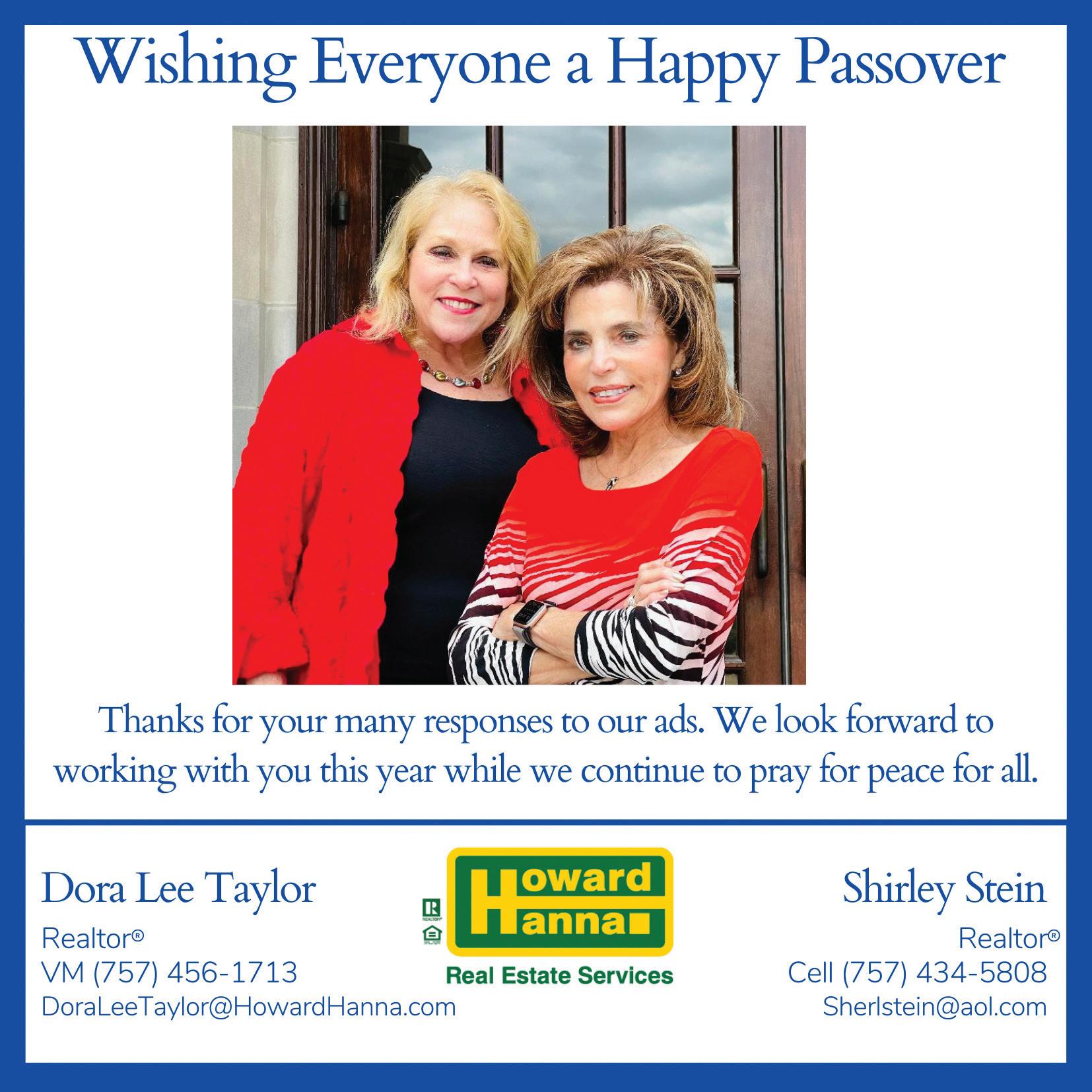 HEALTH CENTER 6401 Auburn Drive Virginia Beach, VA 23464 Mhcofvb.com THE VILLAGE 1049 College Park Blvd Virginia Beach, VA 23464 Villageatmhc.com Wishing you a life filled with joy and love. Happy Passover! from your friends at MHC and Greentree Healthcare! 757.420.2512 • 757.282.2384
