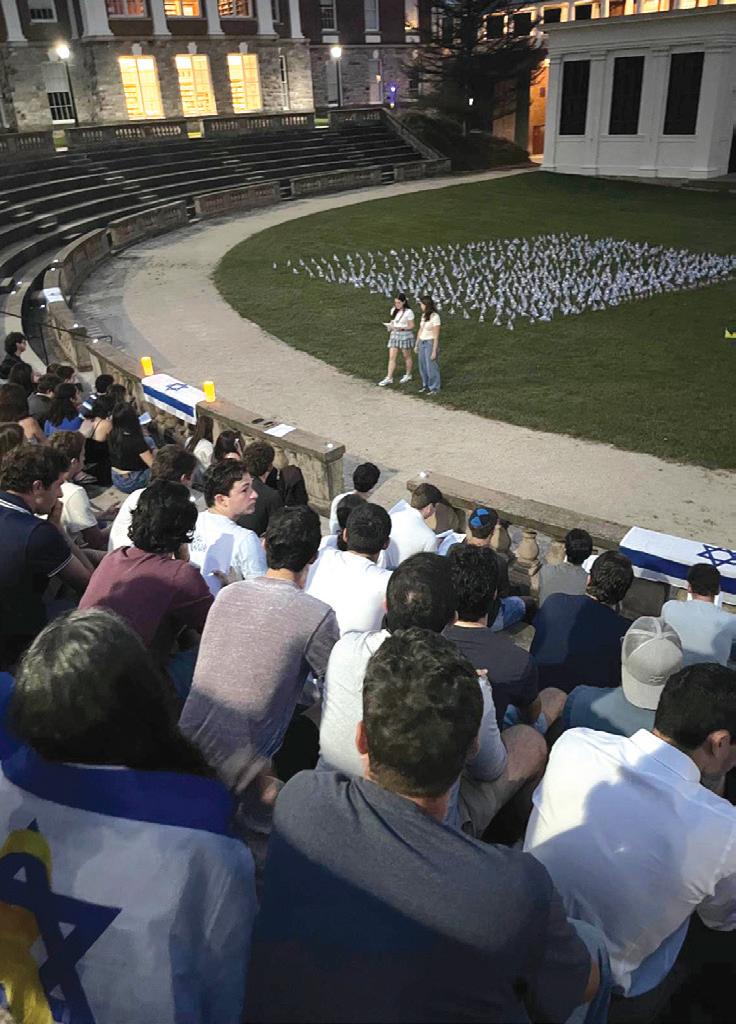 There and elsewhere, congregants wore yellow hostage ribbons and pins on their lapels, and dog tags with the names of the missing. Some families lit extra candles on Shabbat. Rachel Goldberg-Polin, whose son Hersh would eventually be listed among the dead in Gaza, popularized the wearing of a piece of masking tape on which she wrote the number of days since the hostages were taken.